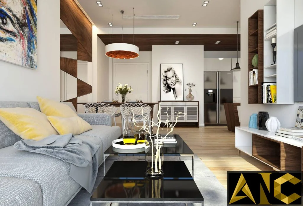 Với việc phối hợp nhiều màu sắc tương phản, nóng lạnh phối hợp với những bức tranh nghệ thuật trừu tượng tạo chiều sâu, sự hài hòa, độ thu hút, sự tương tác cho mỗi khoảng không gian.